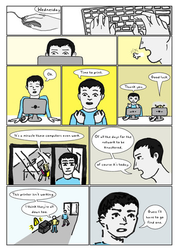 A 65-page semi-autobiographical horror comic about printers and making art, created for my Final Major Project on Art and Design Foundation Diploma at East Sussex College Hastings, Written and drawn by me (2022)!