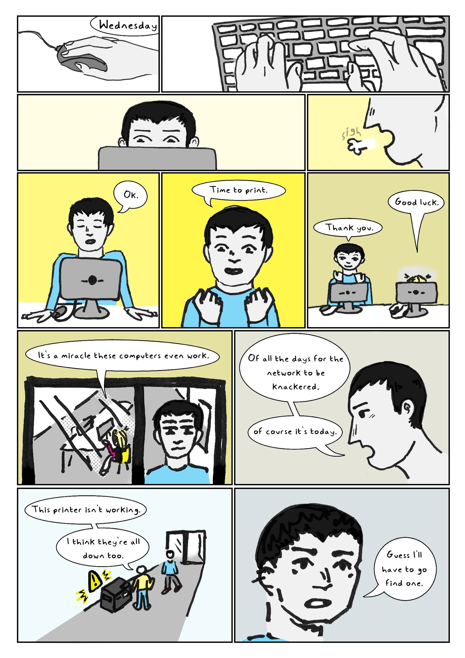 Jude, an art student, discovers a sentient printer in the depths of their college. As the two become friends, they realise that the other is not doing as well as they thought.